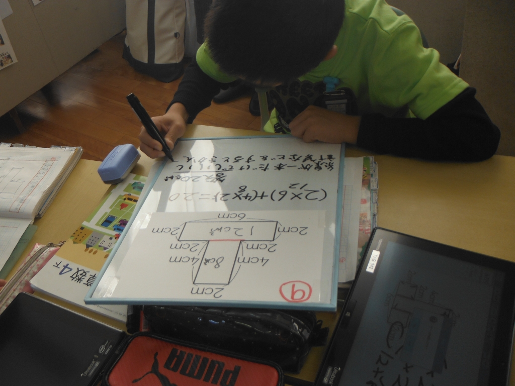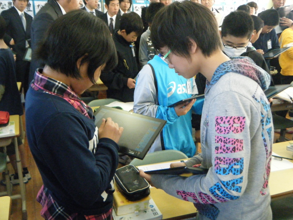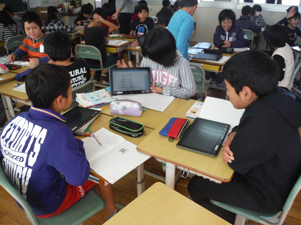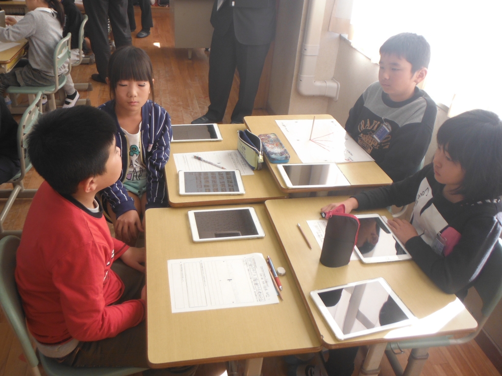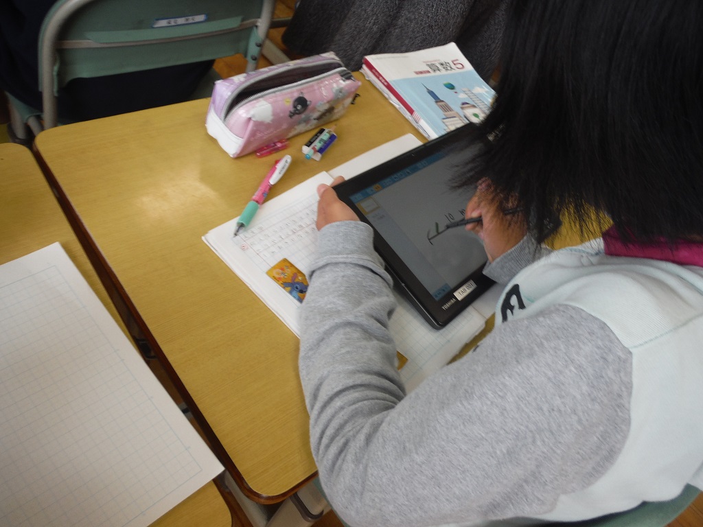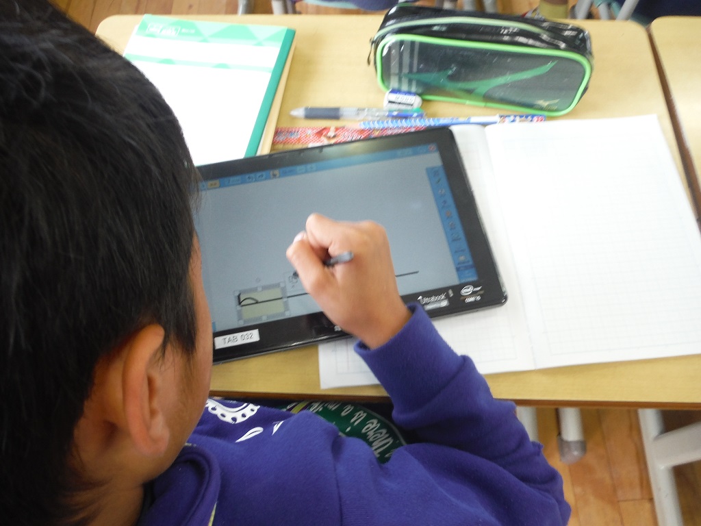 学習では、自分の考えを分かりやすく伝えるためにタブレットに印を入れたり、お互いの画面を比べたりするなど、効果的に活用する姿が見られました。