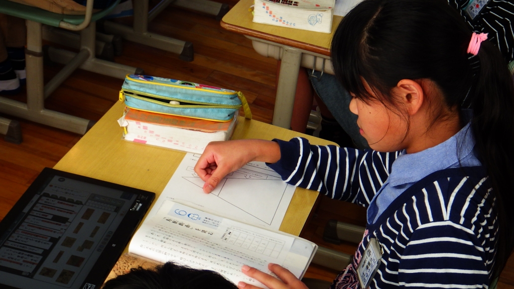 今日は和歌山県から学校視察に来られ、5年生の算数の学習を見られました.