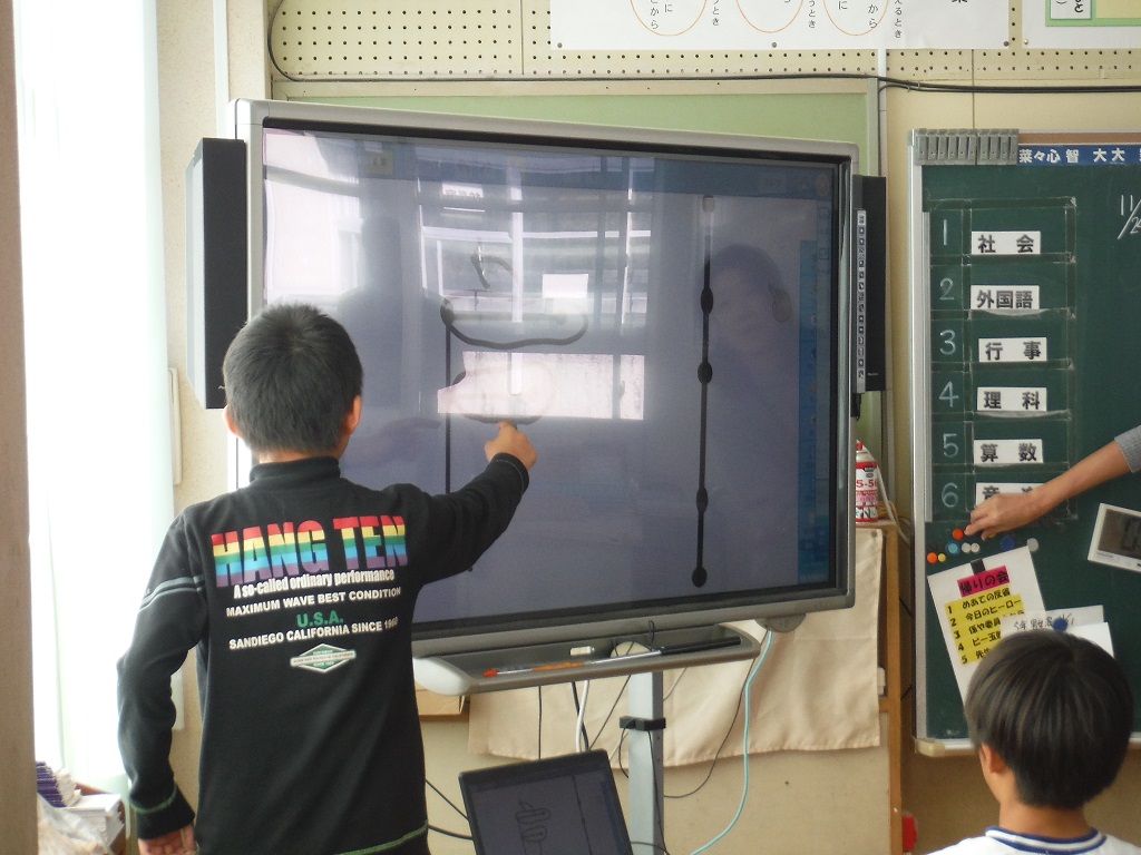 タブレットを考えるツールとして使うとともに、終末では自分の考えを伝える表現ツールとして活用していました。