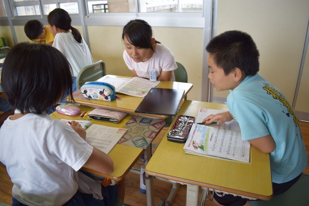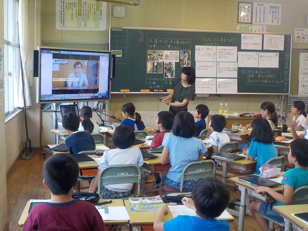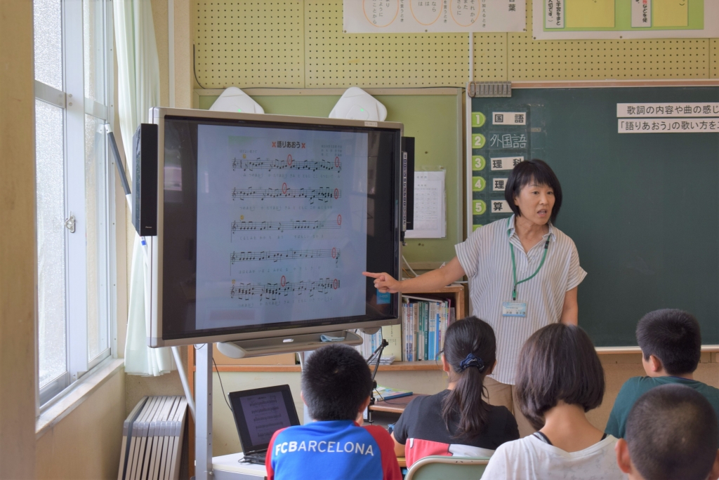 4年生は、授業のまとめで役場(水道課)の方のインタビューを流したり、6年生は、音楽の授業をされたりしました。