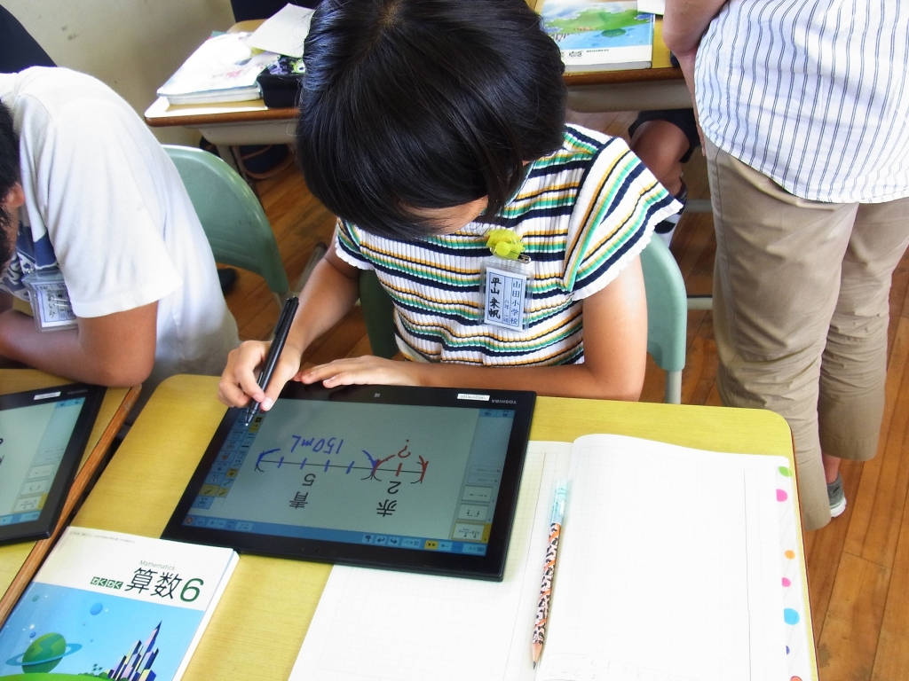 タブレット端末を活用した個人思考やグループでの話し合い活動、電子黒板での練り上げなど、多くの工夫が見られた授業でした。