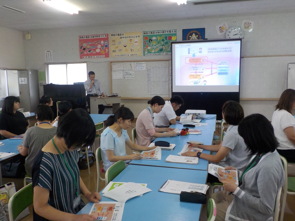 午後からは、業者の方々から、「タブレットを活用した効果的なドリル学習について」や「ロボットプログラミング」について研修を受けました。