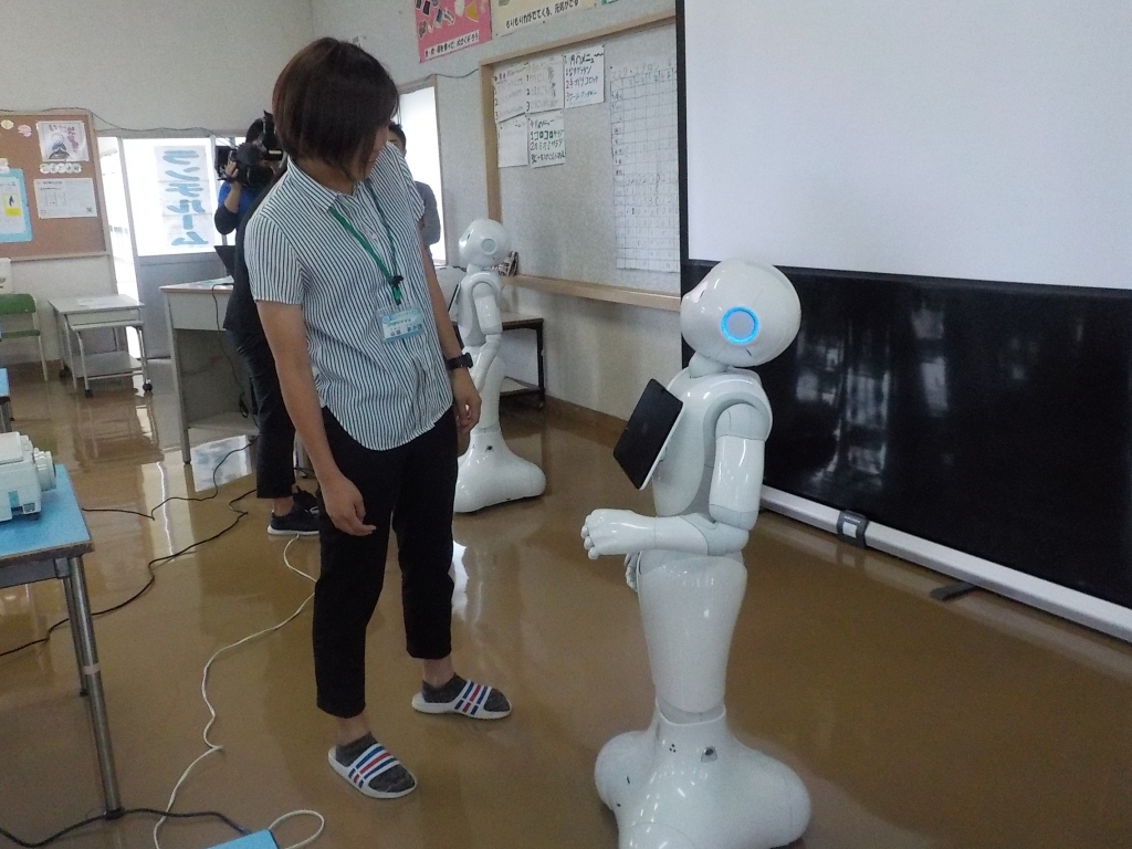 ロボットプログラミング研修では、Pepperが3体きてくれました。Pepperが自分たちでプログラミングしたように言葉を発したり、動いたりする度に、先生方は大はしゃぎしていました。
