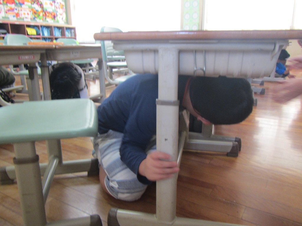 緊急地震速報が流れても、子どもたちは、事前指導をいかして安全な行動をとることができていました。