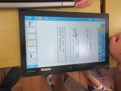 子供たちはタブレットPCに配付された短冊にサイドラインを引いたりしながら、並び替えを進めていました。