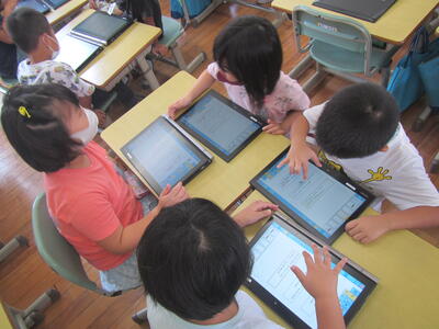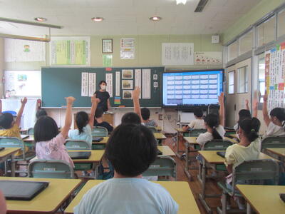 本日(1日)は1年生、4年生、あおぞら学級(5年生)で研究授業を行いました。
