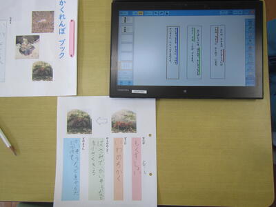 全体での発表です。発表意欲まんまんですね。 最後はシートに書き込み、かくれんぼブックに綴じます。