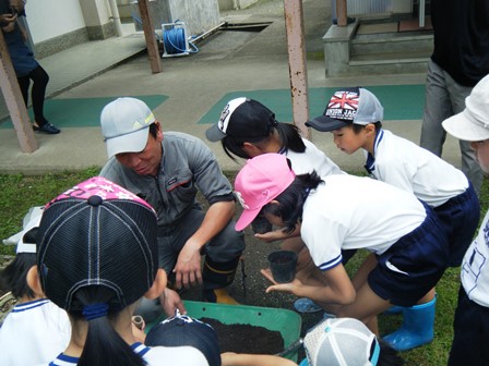 5月15日(金)の4時間目に、2年生は生活科の授業で夏野菜を植えました。当日は「学校に15(行こう)デー」ということで、農業を営んでおられる保護者の方をゲストティーチャーとしてお招きし、種の植え方を詳しく教えていただきました。今回植えたのは、枝豆とトウモロコシ。ポットに土を敷き詰め、みんな教わった通りに植えていました。専門家の説明はさすがです!これから、夏の太陽と2年生の愛情を浴びながら、きっとすくすく成長してくれると思います。収穫が楽しみですが、まずは、芽が出ることをドキドキしながら、見守ります!