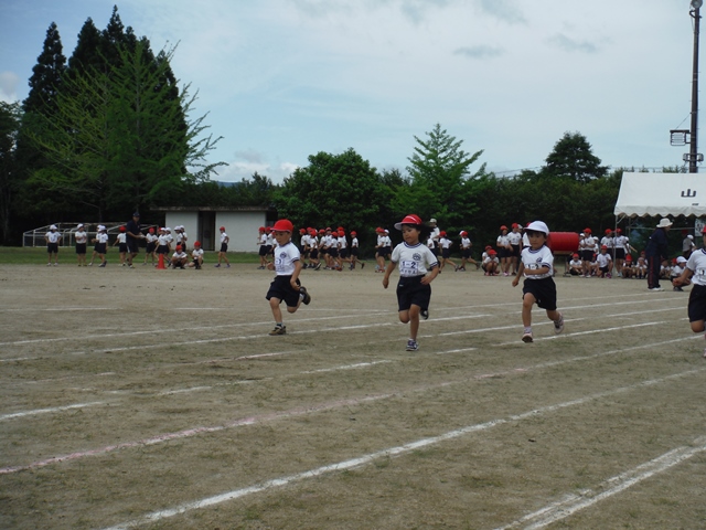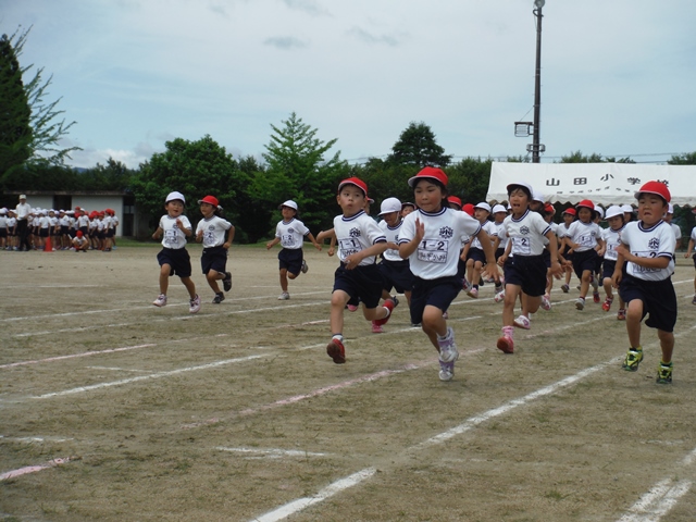 子どもたちは、集中して各学年の徒競走や技巧走、応援合戦などに、