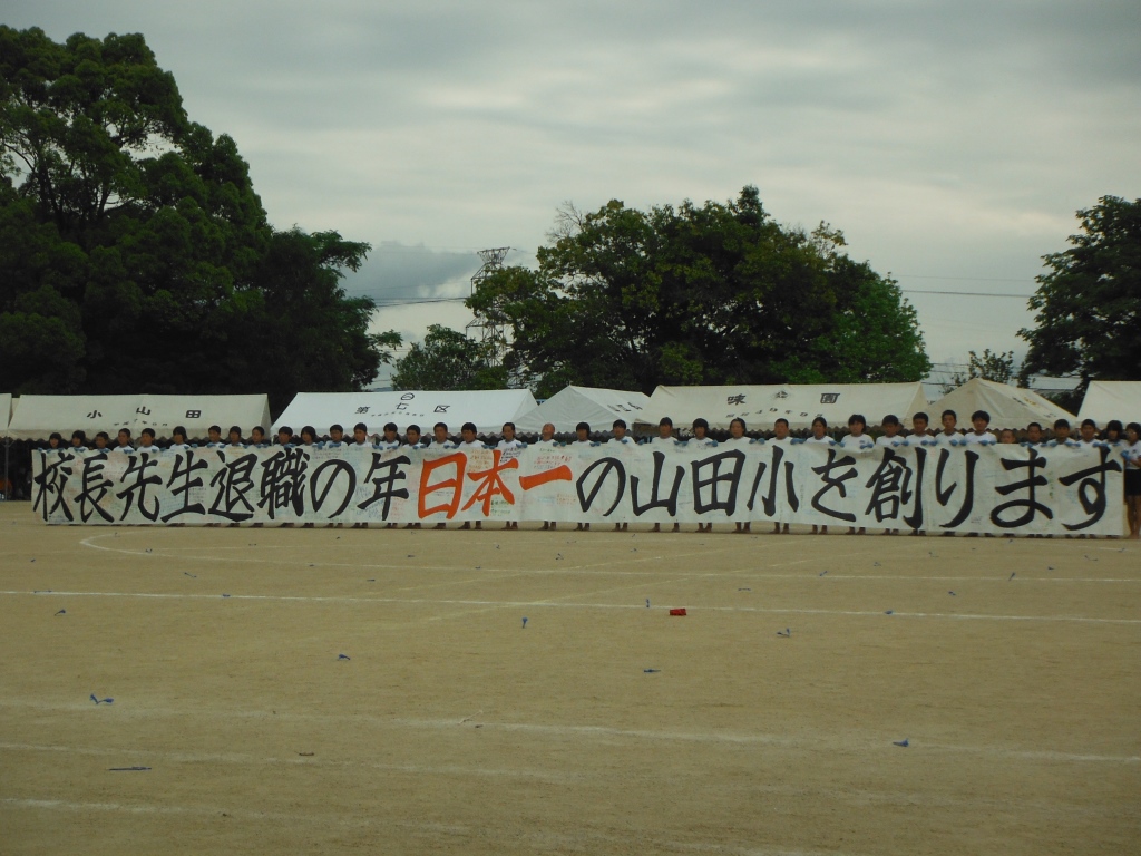6年生にとっては小学校最後となる運動会が5月24日に行われました。プログラムの最後を飾ったのは5・6年生72名による「THE組体操2015~キセキ~」一人一人の本気の姿と見ている方々を感動させたいという思いが本当にすばらしい演技となりました。これからも最高学年として、「日本一の山田小」を目指して力を結集して頑張っていきます。