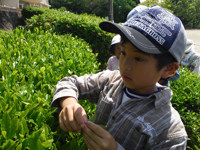 お茶を摘みながら、とても楽しそうに取り組んでいました。