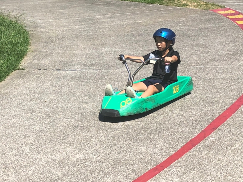 晴天のもと、子どもたちは、ローラーリュージュを楽しんでいます!!