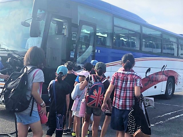 5年生がおとなりの万江小学校の児童たちと一緒に、集団宿泊教室へ出発しました!