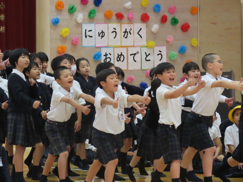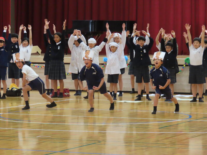 それぞれの学年がダンス、クイズ、歌や劇など楽しい出し物をして、1年生を歓迎しました。