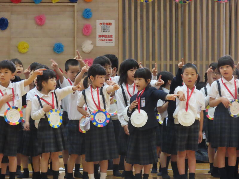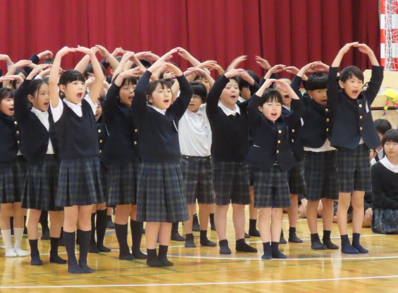 最後は「さんぽ」を歌いながら全員で踊りました。初めて、山鹿小学校の全員が集まった今回。「いい声 いい顔 いい心」の山鹿小の子どもたちでした!!