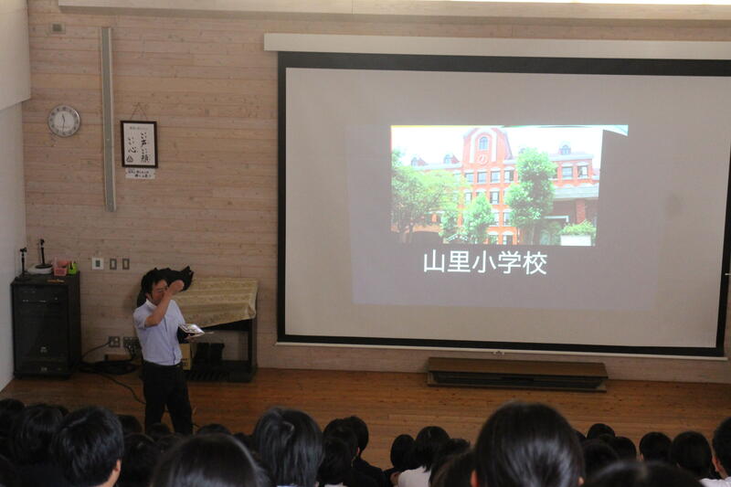 午前中は環境センターの先生から、「水問題・地球温暖化のこと」についてお話がありました。人間がこのまま贅沢な暮らしをしていけば、世界は、地球はどうなってしまうのかを考えることができました。午後からの語り部講話では、漁師一家で平和にくらしていた語り部の杉本さんの生活が、ある出来事で一変し、大変な思い、差別を経験された話を聴きました。杉本さんは、ご自分のとても悲しい、とてもつらい出来事を、子どもたちのために一生懸命にお話ししてくださいました。ここでもいろいろと感じ、学ぶことができていました。