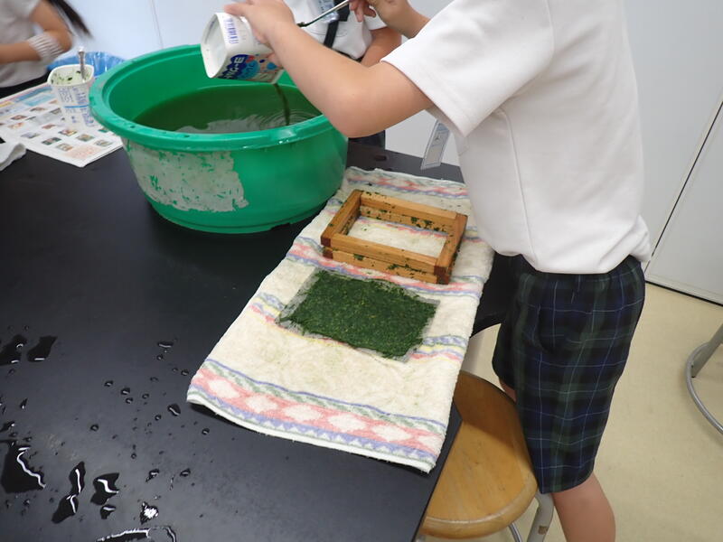 みんなで協力しながら、自分だけの紙を作ることができました。