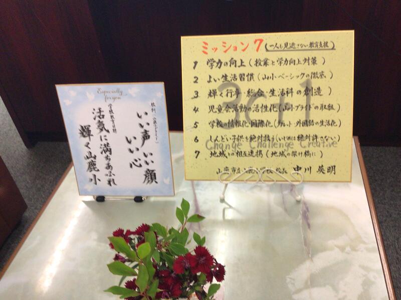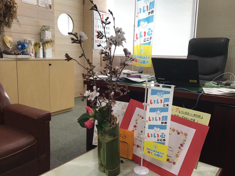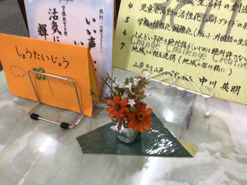 また、校長室と玄関に花は鹿本町の大光寺の関係の方に飾っていただいたものです。