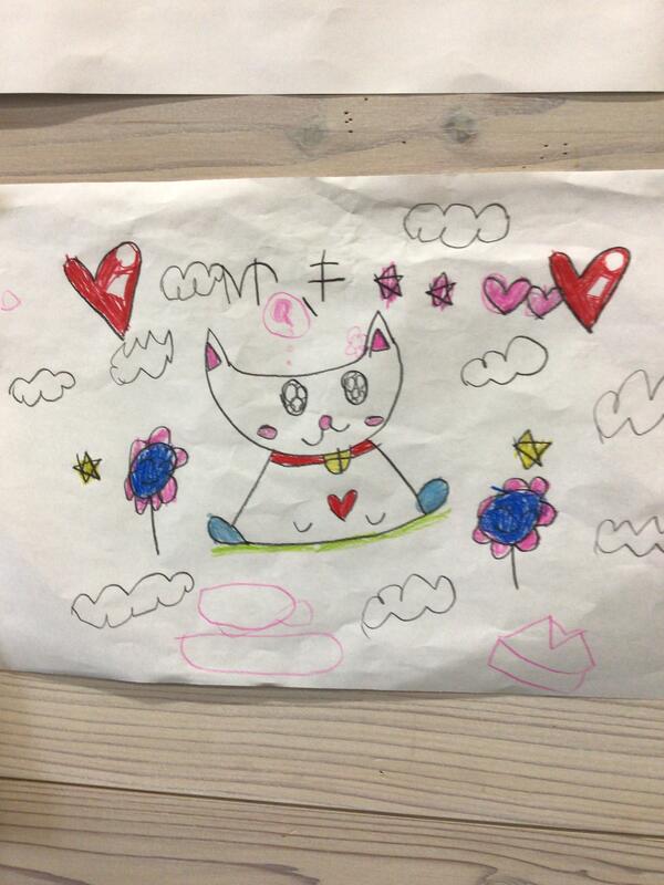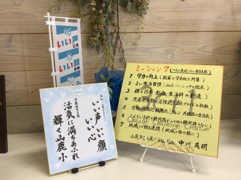 ◎今日は素敵なプレゼントを1年生の女児と職員からいただきました。子どもからかわいい絵、職員からは学校経営方針の色紙を