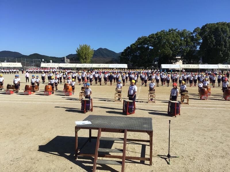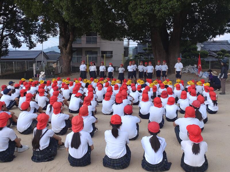 今日から10月。まだまだ暑い日が続いていますが、山鹿小学校では11日(金)のランフェスティバル、19日(土)の運動会に向けて、結団式が行われました。今年も4つの団(赤、白、青、黄)に分かれ、各団ごとに応援団の紹介や声出しがありました。いよいよ運動会モード突入です。