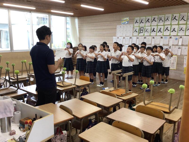 ◎1時限目、1年生の音楽の授業を参観しました。リズムづくりの学習でみんな生き生きととっても楽しく学習できました。先生の笑顔が素敵でしたよ。