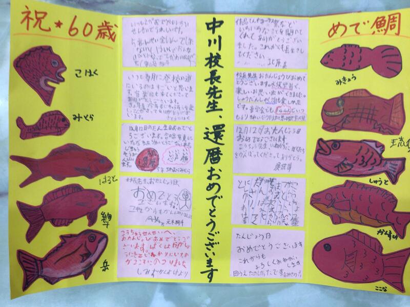 ◎2学期もあと2日、子供たちは冬休みに向けて楽しみでしょう。私はちょっと寂しいかな・・。昨日はなかよし5組さんのクリスマス会に招待されました。音読発表あり、ゲームあり、プレゼントももらい、心がぽかぽかになりました。そして、今日は朝一に、5年生の男児からお正月飾りを作ったということでプレゼントしてもらいました。ありがとうね。いい新年が来そうです!