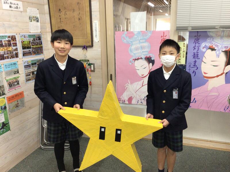 ◎休み時間に6年生が無敵のスターをプレゼントしてくれました。八千代座公演大成功のお礼だそうで・・・・欲しかった無敵のスター!とっても嬉しいです。校長室に飾っています!
