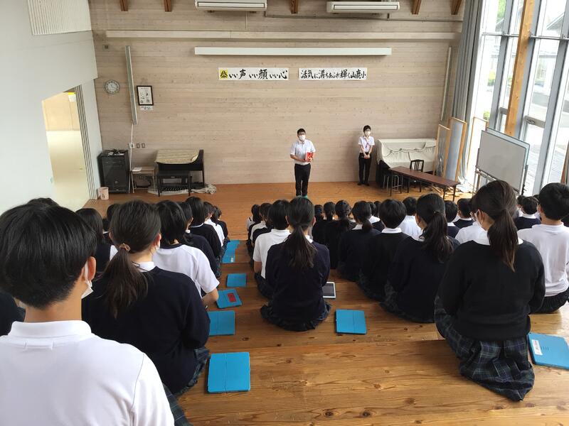 ◎町内児童会が行われました。後半は登校班ごとにいい声のあいさつの練習が行われました。素敵な挨拶をお願いしますね。