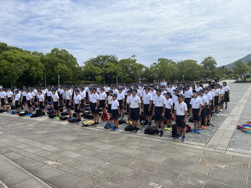 6月5日、6日、6年生は長崎に修学旅行に行きました。この2日間だけ、お天気に恵まれ、子供たちの笑顔溢れる2日間となりました。平和集会では、その姿、歌声にほかの観光客の皆様も感動され、たくさんの拍手を頂きました。子供たちの平和への思いが伝わったと思います。すべての面で、THE山鹿小の姿でした。