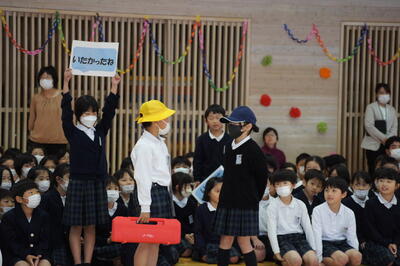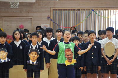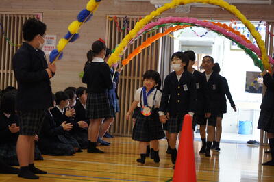 1年生を迎える会が行われました。各学年から、ダンスや歌、劇などの出し物が披露され、1年生は大喜びでした。1年生も大きな声で「1年生になったら」の歌を届けました。学校のみんなで仲良くしていきたいです。