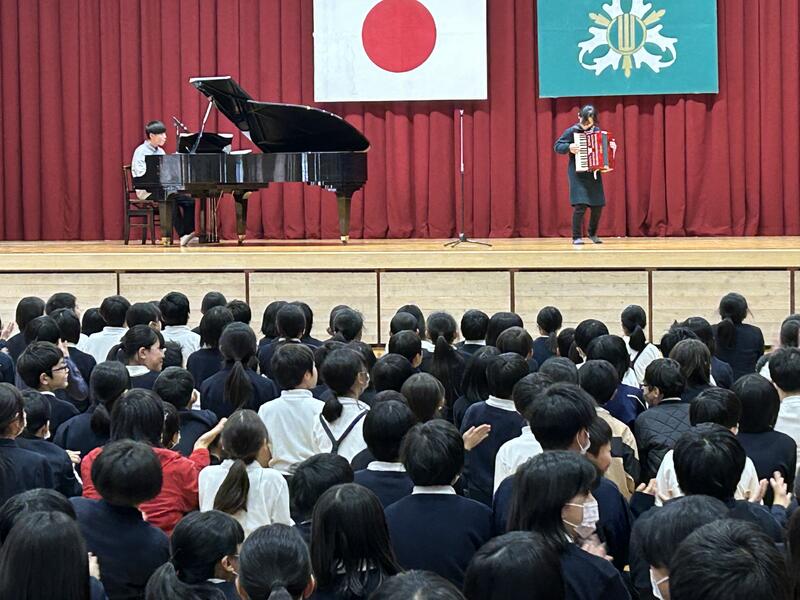 2月14日(水)昼休みに4~6年生を対象にバレンタインミニコンサートが向先生、斎藤先生によって開催されました。体育館は大盛り上がり、手拍子、かけ声、アンコールコールまで・・・明日は、低学年、またまた盛り上がりましょうね~。