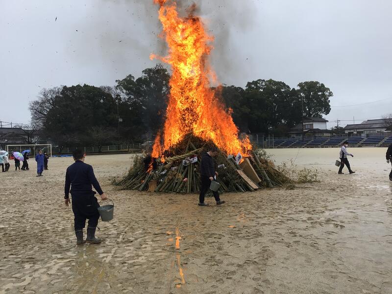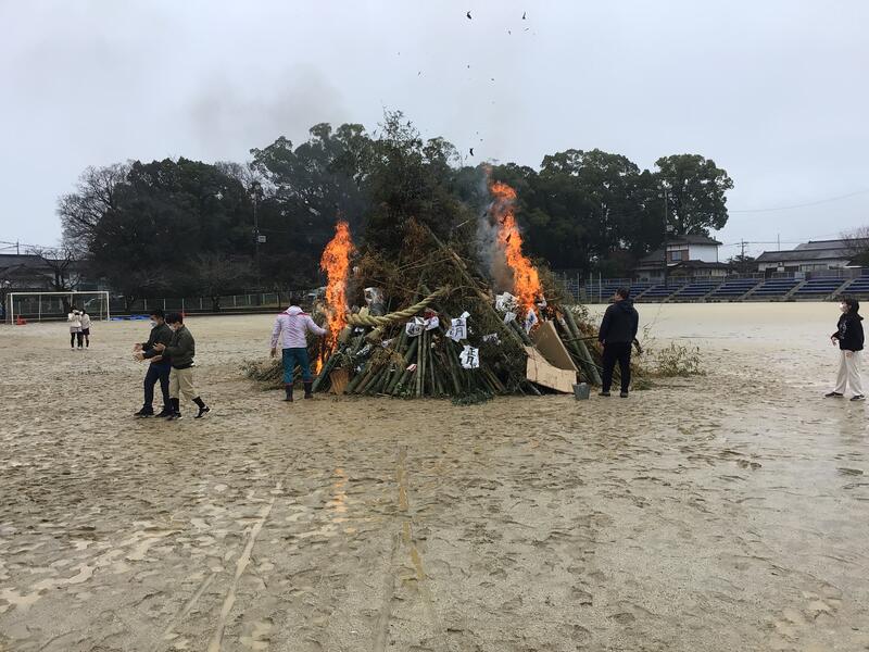 本年度のどんどやは前日準備が雨でできず、当日の朝、小雨の降る中、役員と先生方で準備し、開催することができました。ありがとうございました。無病息災をお願いしました。