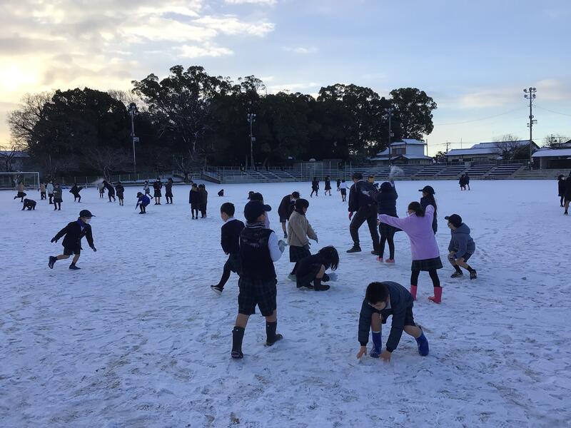 1月25日(水)運動場は白銀の世界。朝から子供たちの歓声が響き渡りました!
