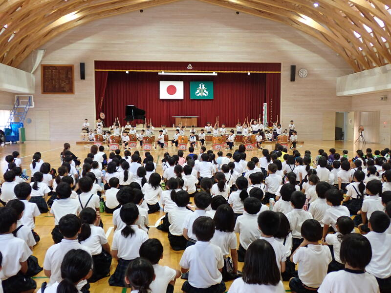 山鹿総太鼓に向けて演奏を披露しました。【4年生】