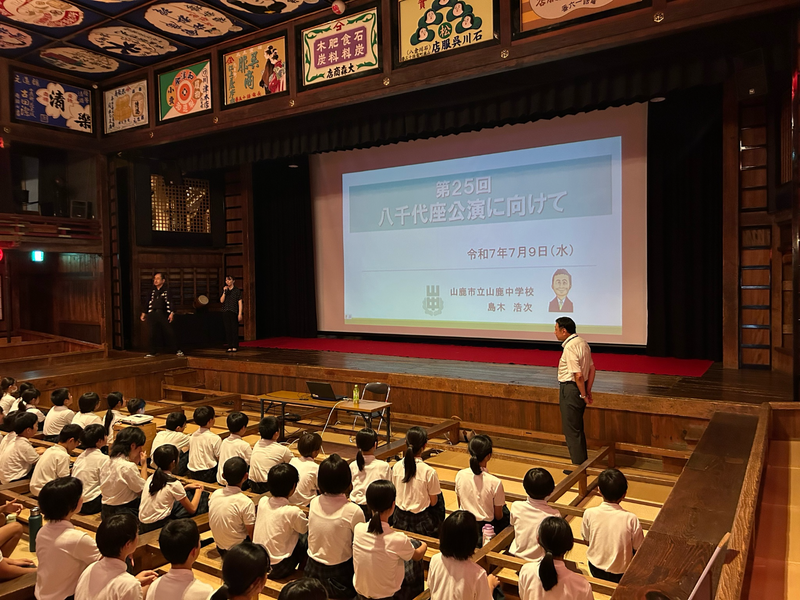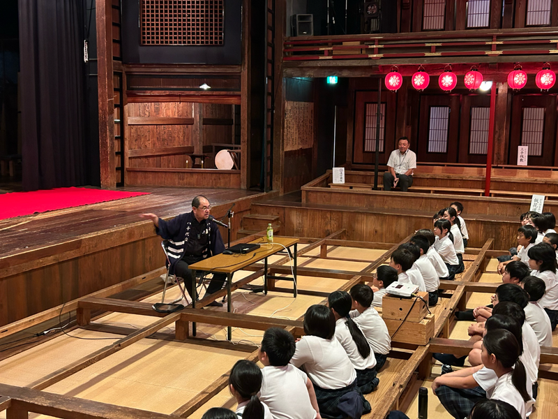 6年生は八千代座で、八千代座の職員の石橋さん、第1回八千代座公演をされた島木先生から