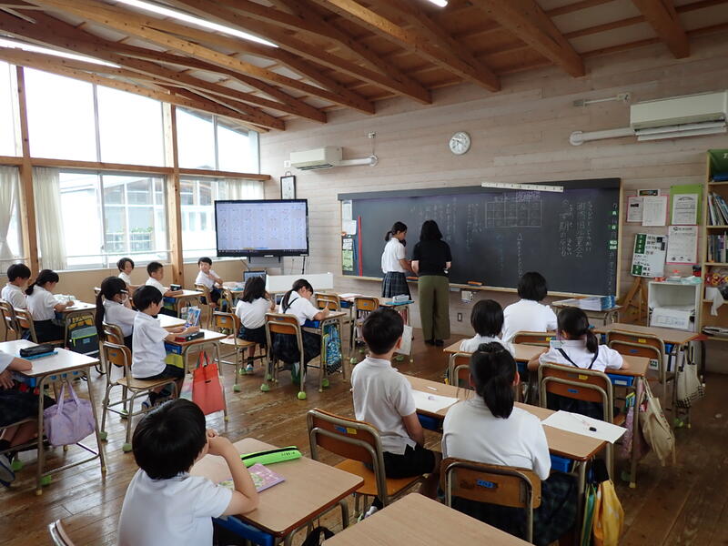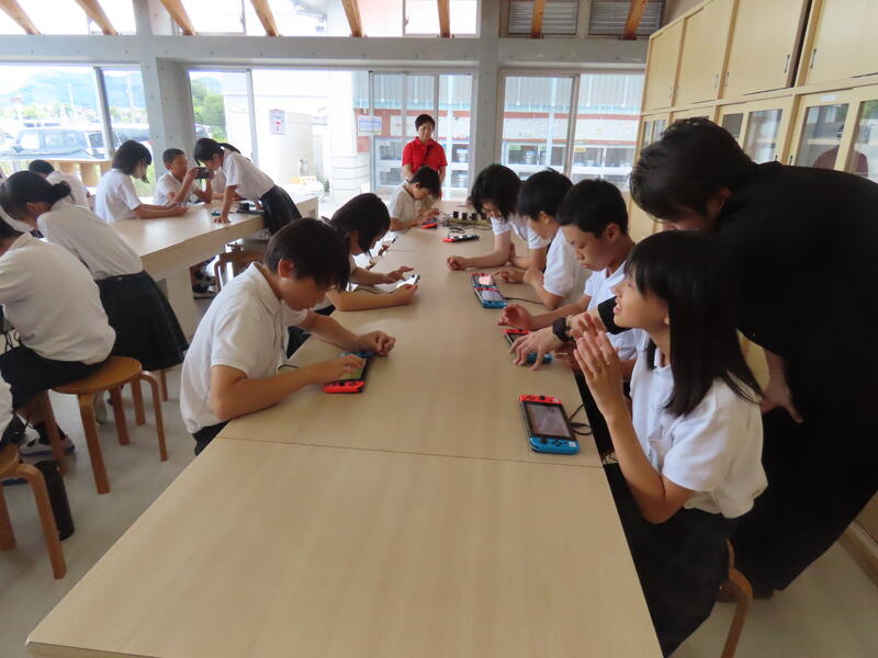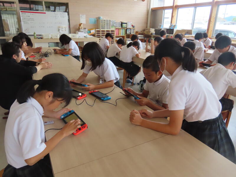 講師の先生は「いつも山鹿小に来ると元気をもらう。大人顔負けのゲームをつくる子もいて驚いた。」