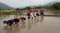 5年生が田植え体験をしました。