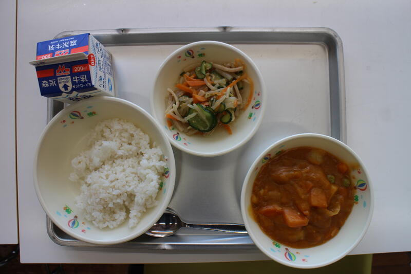 きょうの献立は、チキンカレー、こんにゃくサラダでした。