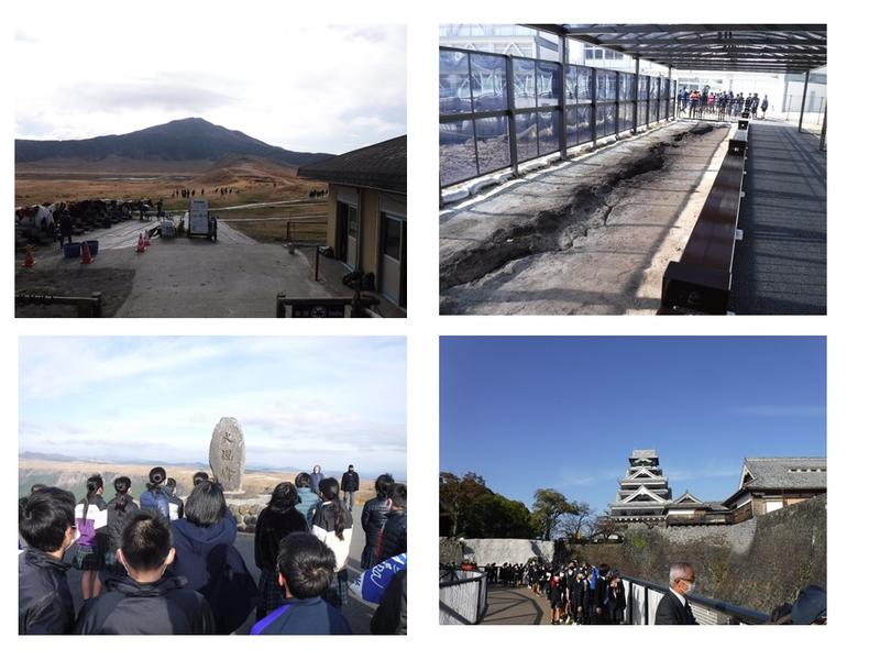 2日目。朝から大観峰に行きましたが…「寒い!」風が強くてみんな寒ーいと言いながらも大観峰の石碑のところまで走って元気いっぱいでした。その後水前寺成趣園や熊本城の見学をしました。土曜日で観光客もたくさんいましたが、ガイドさんの話をよく聞いて、しっかりと学ぶことができました。