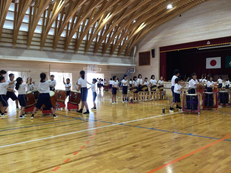 体育館から太鼓の音が聞こえてきます。見に行きますと大運動会のオープニングセレモニーの4年生の代表太鼓隊の練習です。その中に、なんと初代5年生の太鼓隊が指導者として教えに来てくれています。教える方も学ぶ方もいい顔です。4年部と5年部の先生もいい顔です。これぞ繋がり・・・伝統の構築です。ありがとうね~。