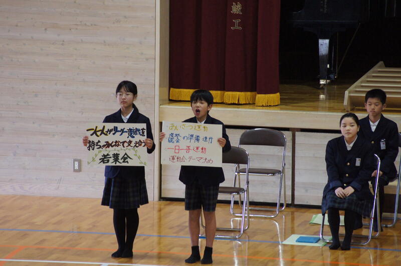 2月28日(水)5校時に本年度の児童会活動の総括「若葉会総会」が体育館で開催されました。各委員会の委員長さん、副委員長さんの発表は、流石の姿で、下学年の目標となりました。また、山小をもっとよくしようとする取組、工夫に満ち溢れ、この学校を盛り上げてくれることがよくわかり、とっても嬉しい気持ちとなりました。5年生の新役員も決まりました。頑張ってね~。