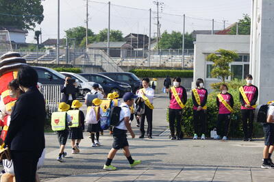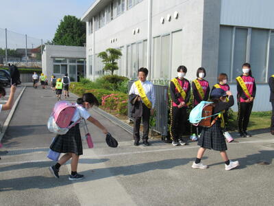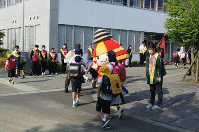 早田山鹿市長、山鹿市役所の皆様、ピンディーズの皆様、ころう君に来ていただきあいさつ運動をしました。朝からたくさんの「いい声」を聞くことができ、気持ちがよくなりました。山鹿市があいさつであふれるまちになっていくように、子どもも大人も一緒にこれからもあいさつを交わしていけたらと思います。