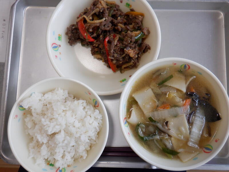 今日の給食は麦ごはん、ワンタンスープ、チンジャオロースー、牛乳でした。