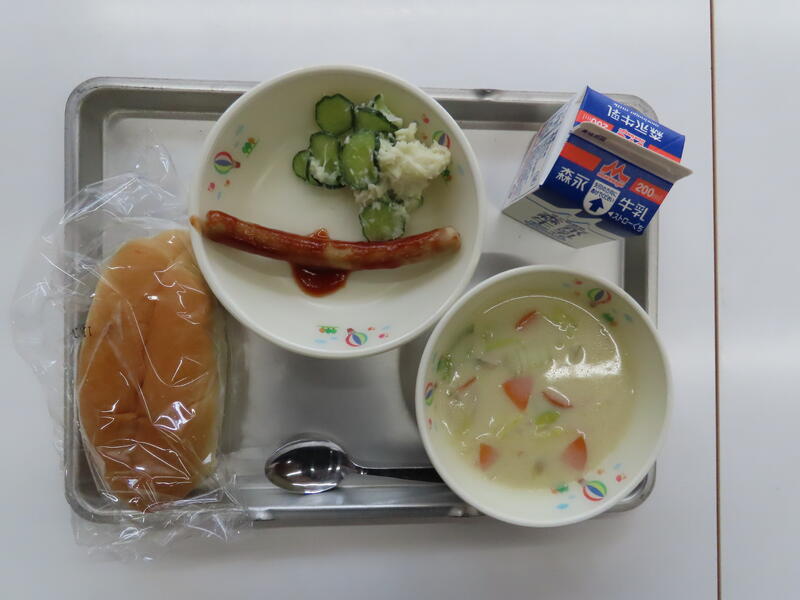 きょうの献立は、セルフドック、はくさいのクリームに、ポテトサラダでした。