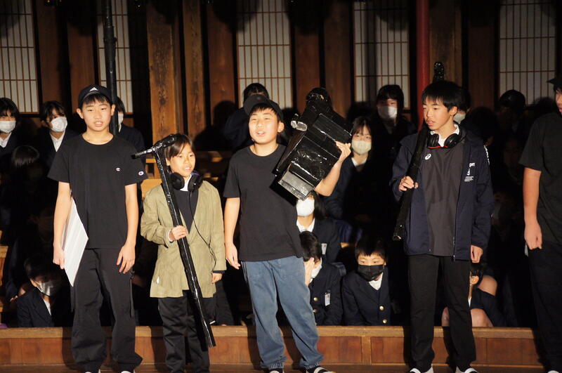 今年は25回目の節目の公演。先輩方が繋いできた大切な公演の節目の回となりました。劇を作り上げる全ての工程を自分たちで行う中で、壁にぶつかることもありましたが、ひたむきな演技や裏方での機敏な動きは、見に来てくださった方々に感動を与えたことと思います。仲間と心を一つにして、伝統を受け継いだこの経験は、山鹿小の誇りとともに、子どもたちのこれからの人生を支える大きな自信となりました。卒業まで残りわずか。日常生活にもどっても、後輩たちに素敵な姿を見せてくれることと思います。