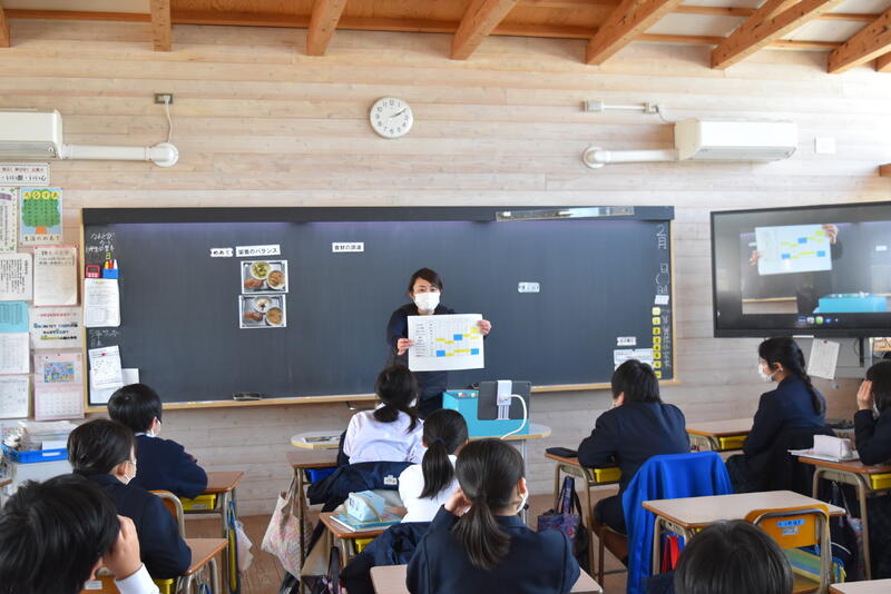 今週は、校内の給食週間でした。給食委員会の5・6年生が放送でクイズをだしたり、栄養教諭の山内先生が各学年をまわって給食の授業を行ったりしました。2月18日(金)は、5年生で給食の授業がありました。子どもたちは、衛生管理や給食の栄養バランスについて、分かりやすく学んでいました。これからも、給食に関わる人や食材に感謝の気持ちをもって、おいしく食べてほしいです。