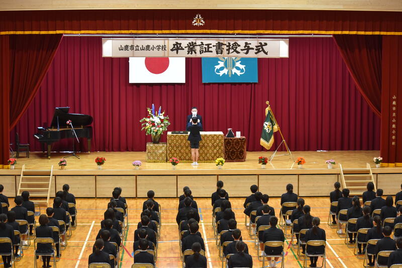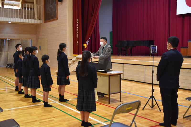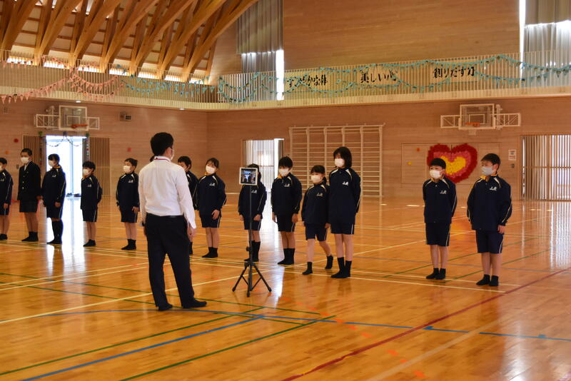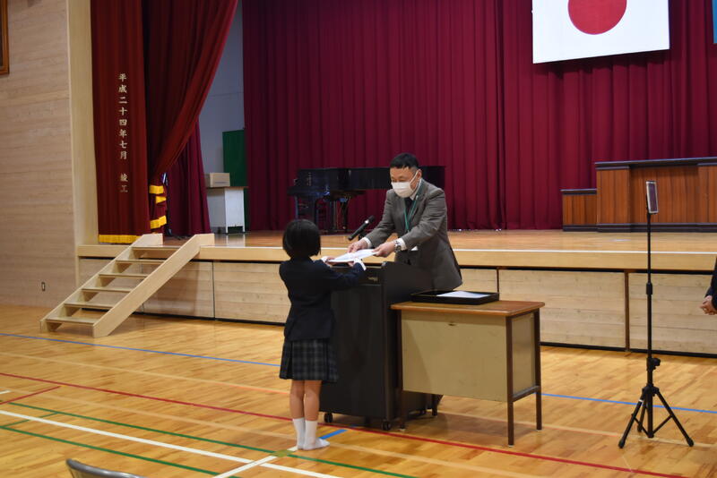 3月23日(水)に、修了式が行われました。体育館では、各学年の代表児童が校長先生から修了証を受け取りました。今年度も新型コロナウイルス感染症の影響で、行事の中止や延期などがありましたが、それでも感染症対策をとり、修学旅行や八千代座公演、各学年の見学旅行や町探検などを実施することができました。保護者の皆様には、ご理解・ご協力を頂き、本当にありがとうございました。