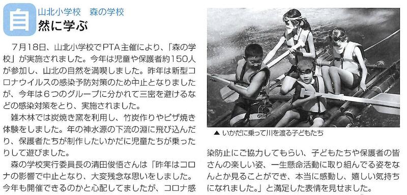 広報「ぎょくとう」9月号に、PTA主催による「森の学校」についての記事が掲載されました。