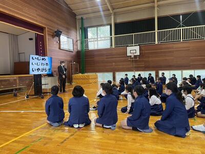 藤本竜一校長先生から、「い」じめ、「い」じわる、「い」やがらせの、3つの「い」をなくしていきましょうというお話がありました。そのために「相手の立場で考える」「自分のこととして考える」ことの大切さを子どもたちに伝えられました。