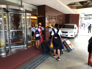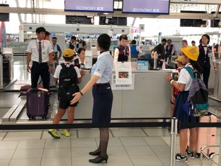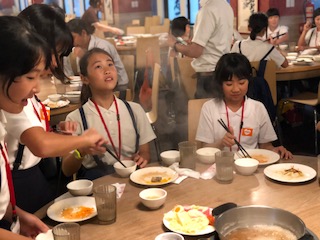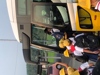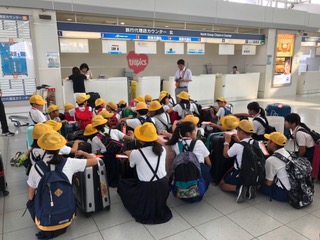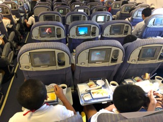 無事、台北の桃園国際空港に到着しました。6年生は、機内でも行儀よくしていました。写真は機内の様子です。機内食は牛肉ご飯と海鮮丼のチョイスで、あとパン、かぼちゃサラダ、紅茶のムース、フルーツ、飲み物がありました。